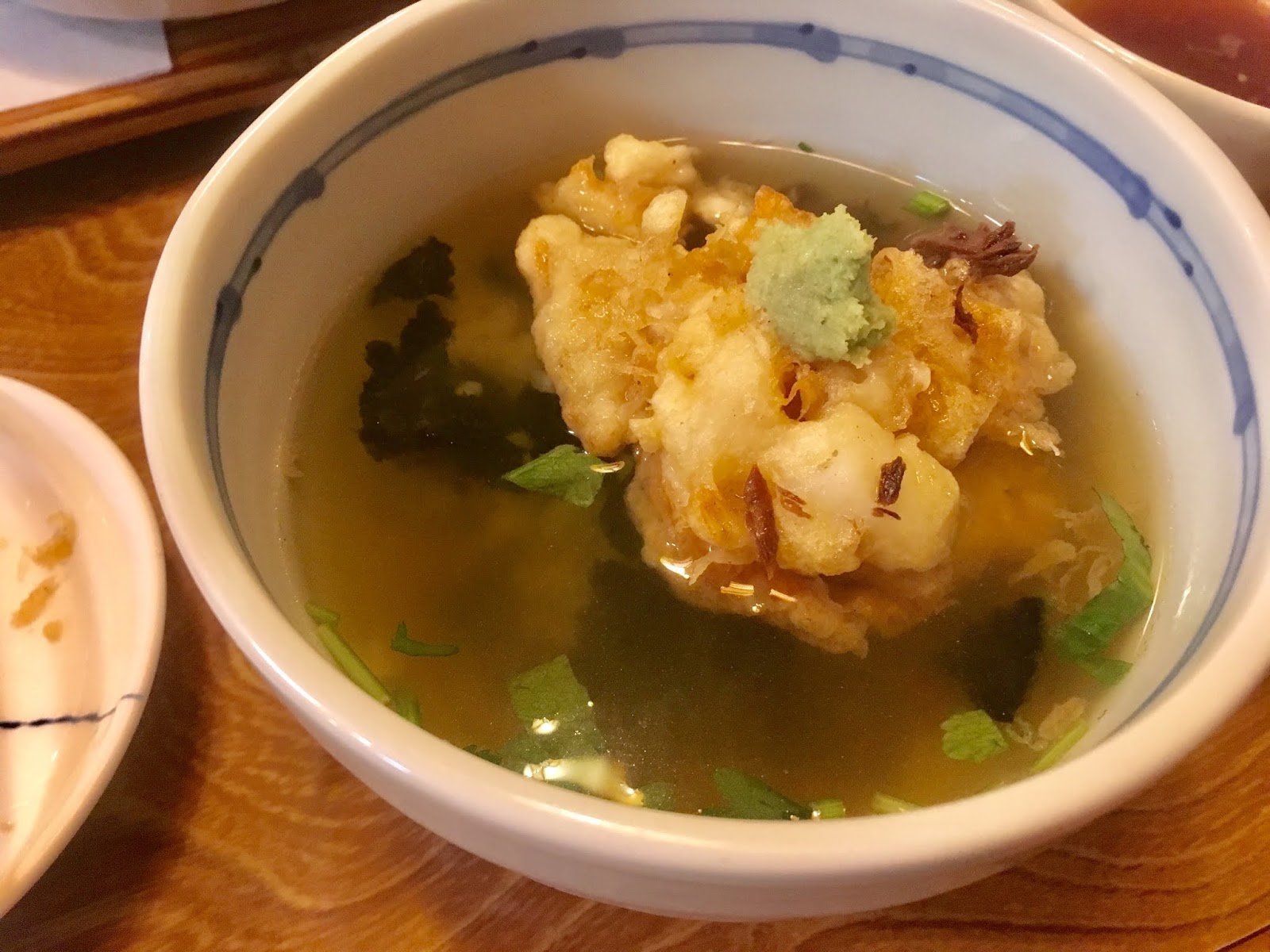 天ぷら以外の一品料理も充実していておすすめです(下の2番目の写真は酢の物です←おいしかった!)。